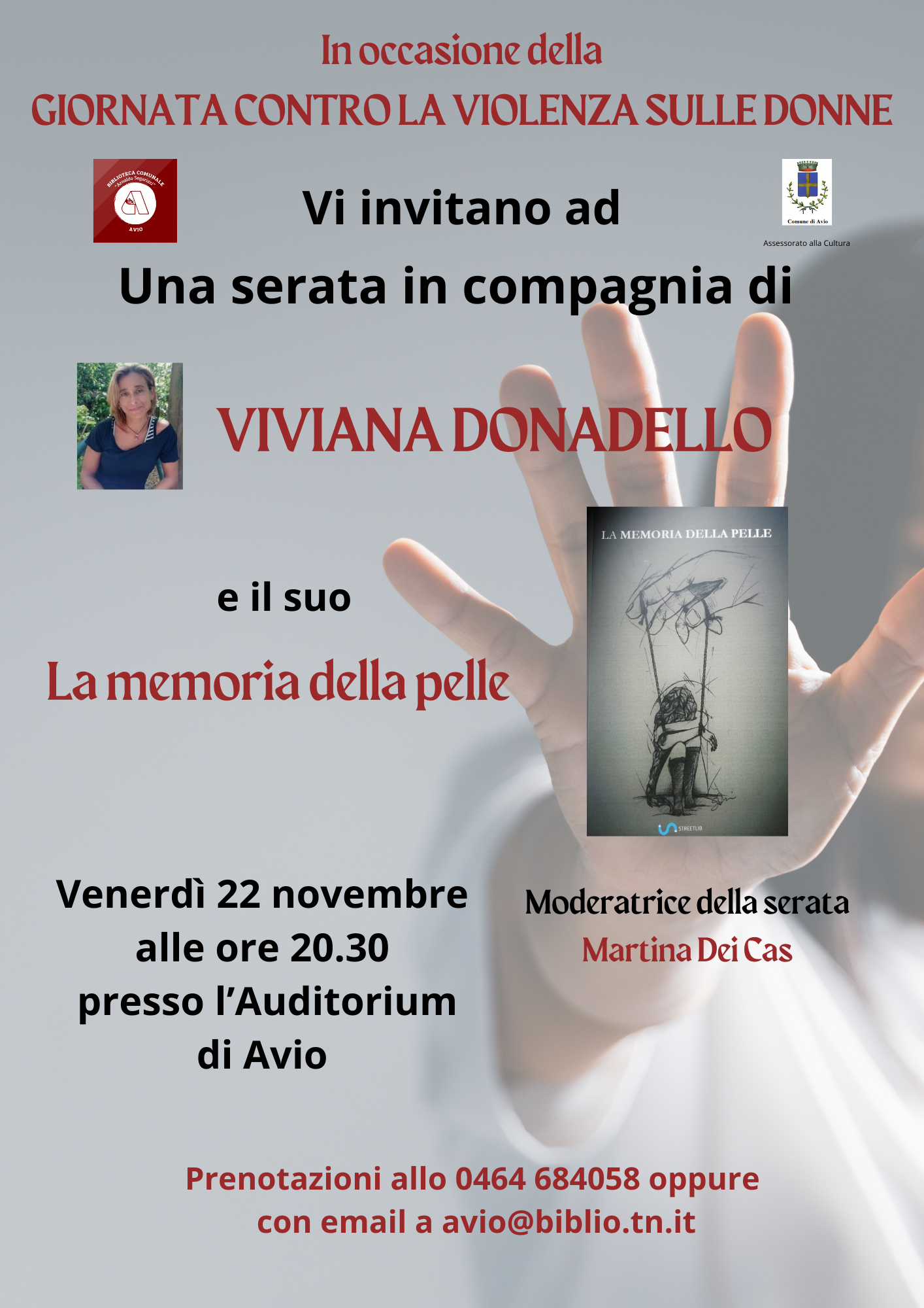 In occasione della giornata contro la violenza sulle donne l'Amministrazione comunale organizza una serata in compagnia di Viviana Donadello e il suo "La memoria della pelle".
