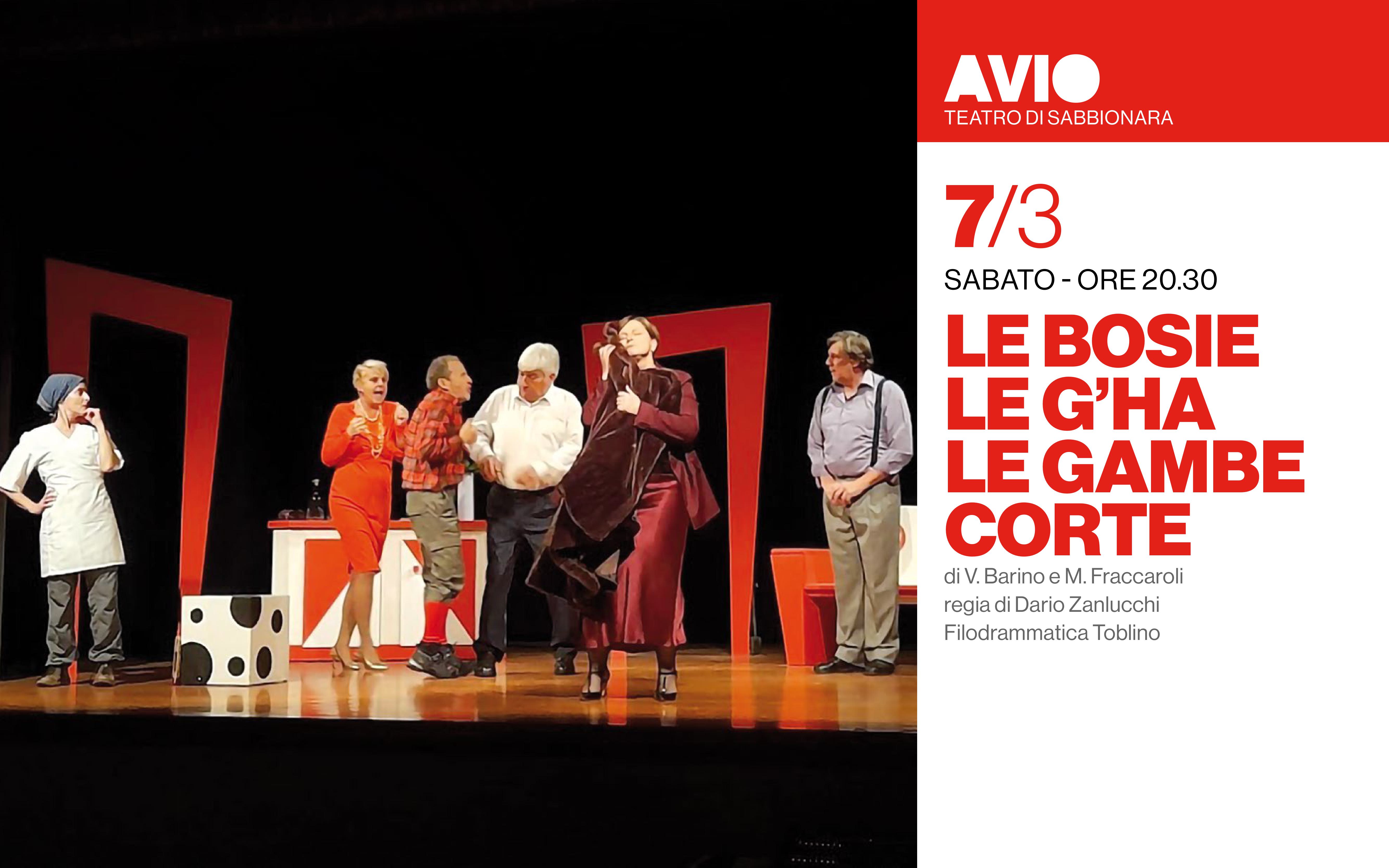 Ad Avio gli spettacoli si terranno, presso il Teatro di Sabbionara per quattro sabati a partire dal 28 febbraio e fino al 21 marzo.